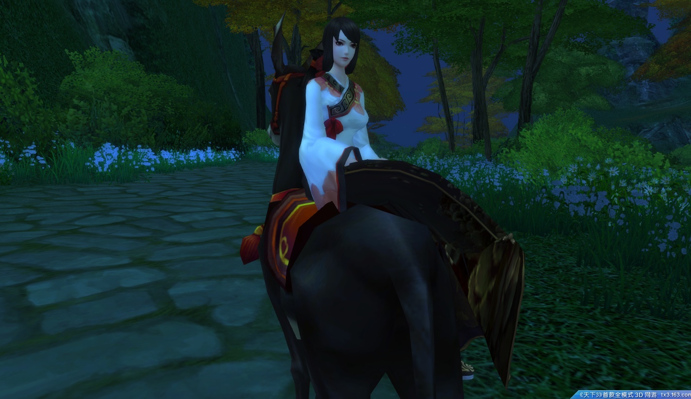 玩游戏之初,一心想当个仗剑江湖的侠女,于是白衣白马,倒也利落。