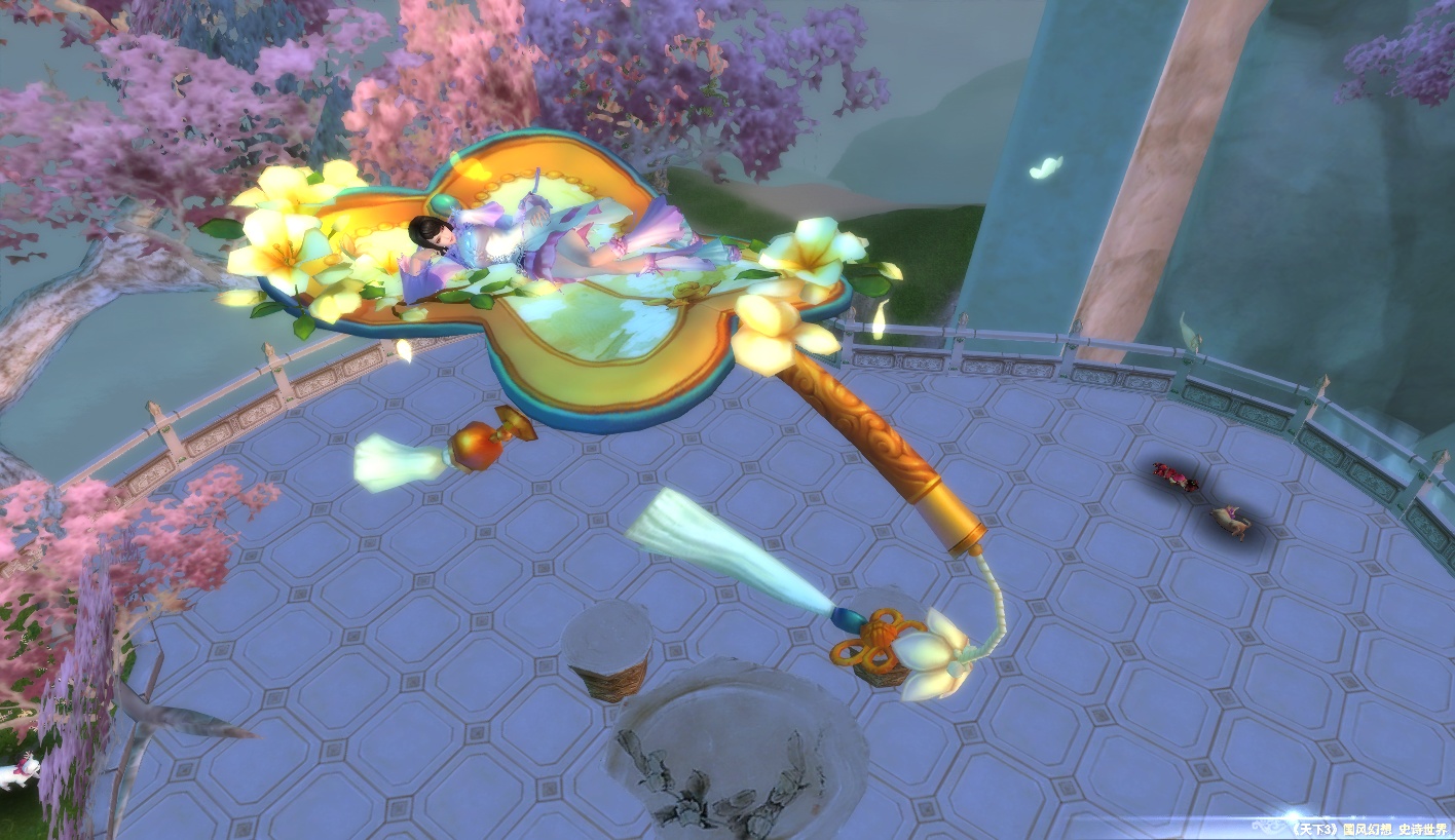 配一张国色天香的,也算符合了坐骑的活动吧。要知道最初,飞行坐骑就只有风火轮和这个国色天香。