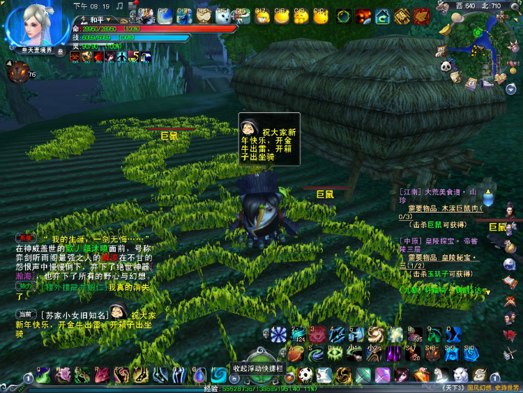 在跟帖中上传在变成草精拜年的照片(摆摊、幻化、乘骑坐骑,总之变成草精的样子进行照相),并向论坛的小伙伴们送上祝福的话语{:8_529:}