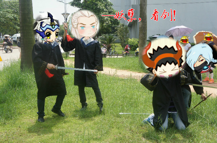一群二货穿着学士服四处拍照,看见几个舞蹈学院的小师妹,于是厚着脸皮借了人家拿来排舞的剑.................