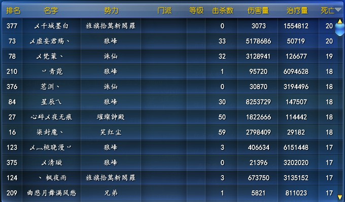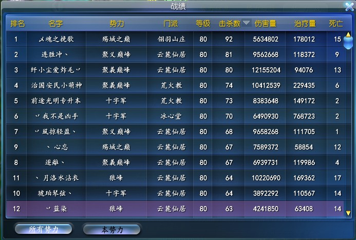 势力战战绩榜: