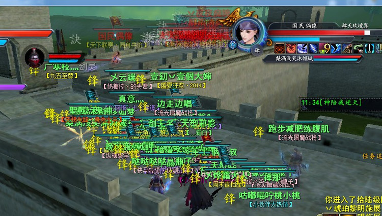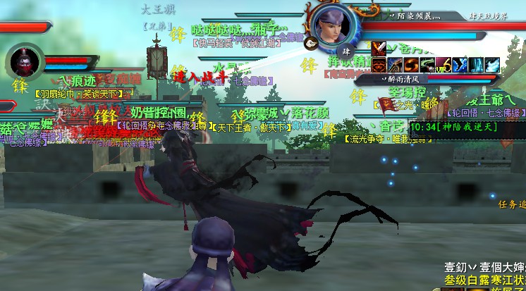 这是在石林的对推,选择在神石附近的那个天空中的台子上,直接对推。后面几次小的对推选在了建木的副本门口,流云渡以及龙门客栈。