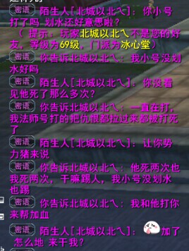 首先关于该楼主在2楼说的发生的小插曲有些不对啊,明明是葬花楼的WL先杀的我们势力HH的小号,怎么成了我们HH先杀的了?而且敌对的主要原因也不是因为WL和HH的事情,因为后来已经说好这是他俩的个人恩怨,他俩以后要打要杀就他们自己去做,势力不去参与。敌对的原因明明是因为那个北城以北的BX为什么不说出来呢?