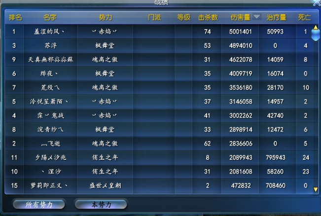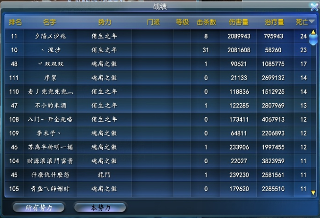 战后总结:魂离+倾家+有生今天全程飞天,真正的对推不超过三波。几本上就是我们大部队来了,敌对立刻副本传送走,使得整个势力战并没有意想中的激情。