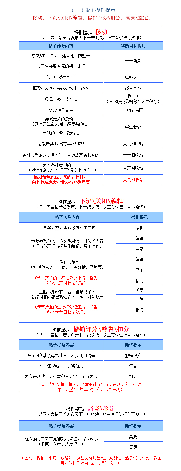 (一)版主操作提示:移动、下沉\关闭\编辑、撤销评分\警告\扣分、高亮\鉴定