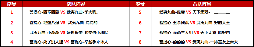 天下无双---丶黑名单丶&丷赤焰丷 菩提心---戦義如鋒 & 龍門 武夷九曲---風雲 & 戰天 盛世长安---殇城之巅