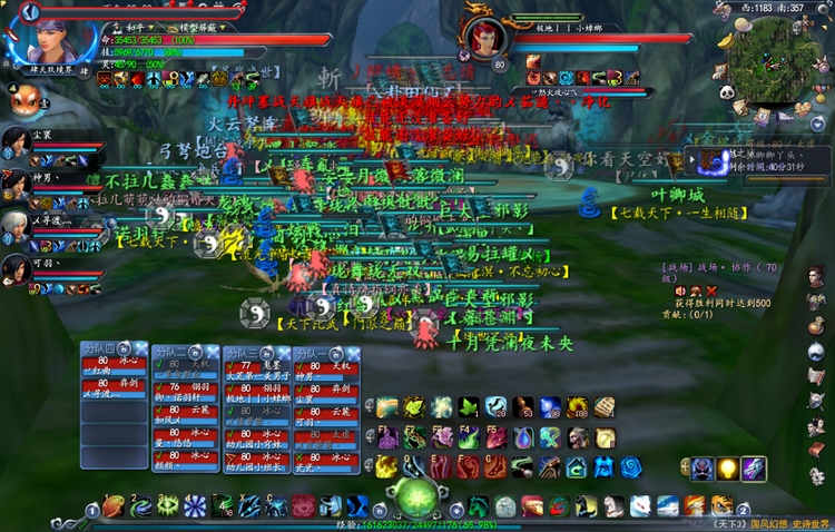 今日辉煌联盟这边指挥没有到位,笔者对临时拉上补位的指挥表示佩服! 前期辉煌联盟杂乱无章,所以笔者机智的吃饭去了。八点回归以后,联盟先在河伯桥与血战天丅进行交战,但由于前期散漫,被灭。 后转战盐泉村祭天台,与百戦联盟交战,百戦联盟分兵指挥,可以明显看到戦玥亡命与一路火花带闪电分批到来。双方僵持一段时间后,血戰荣誉追着百戦联盟而来,将辉煌联盟夹在中间,辉煌联盟大部分灭,小部分脱离战斗。血戰荣誉清掉百戦联盟。 经此一役后,辉煌联盟主打血战天丅,避开血戰荣誉和百戦联盟,势力战步入正轨。在盐泉村,西岗营地,白水台,五彩池,鼎湖与血战天丅发生对推,胜负比例6:4。最后血战天丅与辉煌联盟各夺得一座祭天台。 血戰荣誉与百戦联盟一直”纠缠不清“ 双方战况8:2。血戰荣誉除开前期被灭以外,一直以胜利者的姿态出现在势力战。百戦联盟由于人员的流失,选择了分分兵作战,但成效不大,一直处于弱势。 本次势力战就是如此啦!~