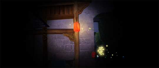 神石附近有一个小铺子,没有人,只剩下灯笼透着光