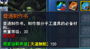 在沐雪妹子那里买到普通制作书(同样消耗天道酬勤声望),同时再找小伙伴买来一些其他门派的半成品~