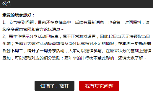 这游戏真恶心,语文学的不好的请不要做策划好么。活动介绍上面写的1月12号每天9:00-22:00,正常人的理解都是12号也能分享好么。语文不好逻辑不好,还当策划,王益的门槛这么low?新翅膀出来那天也是,18炼护和16炼护弄反了,醉,没弄好就别急着上,天天想着怎么圈玩家的钱,能不能沉淀一下,想想怎么留住那些还愿意玩的人啊?真是恶心,明天回家和基友渣J三去,不花钱玩游戏我看看能不能玩的比天下好。