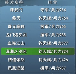 攻方:鼎天、阿瑞斯(小势力)、浪迹天涯、血舞江山、潇湘别苑(小势力)、情儀依然