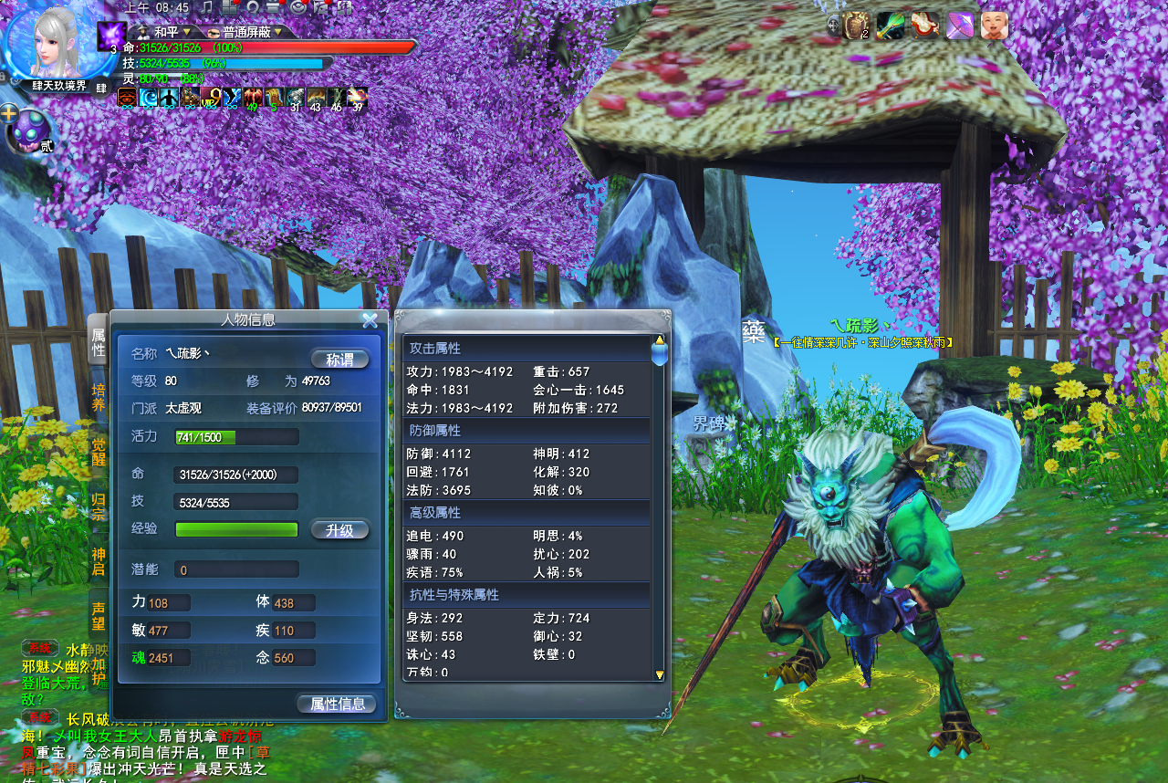 状态全开之后的属性~~4192的大功 小攻都有1983 75满疾语 490的追电 1645的会心 1831的命中带657的重击 会心重击经常轮着出