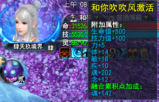 蜃气珠子的加成属性,加了将近350的魂,所以才能堆出3400+的大功