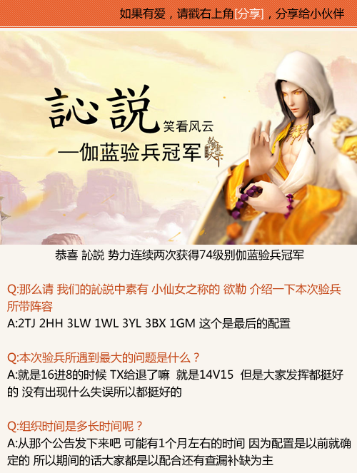 [翰书天下·冠军采访]恭喜訫説蝉联74伽蓝验兵冠军!!