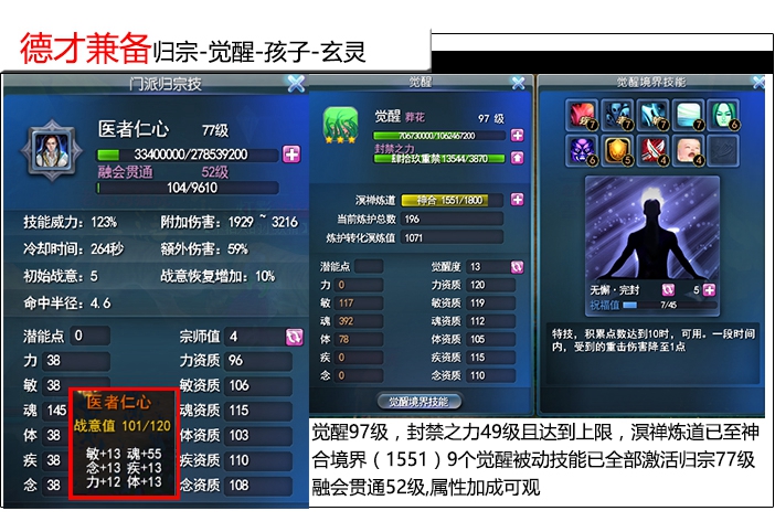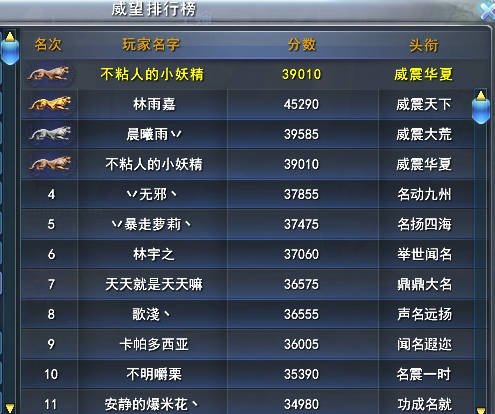 (榜上的属性和装评,随着激活的孩子跟灵兽而有比较大的变动,详见属性介绍)