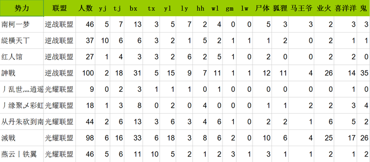 表格中占领势力为当天流光城占领势力,即为前一天分数最高的势力