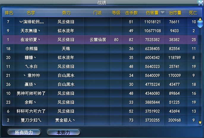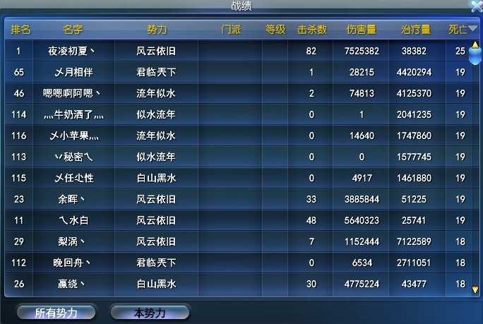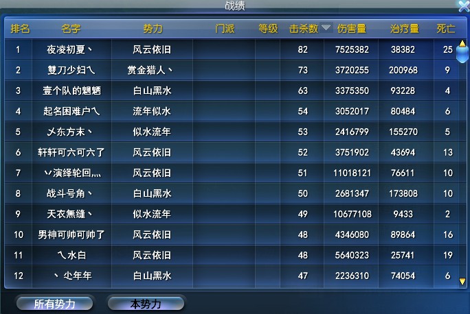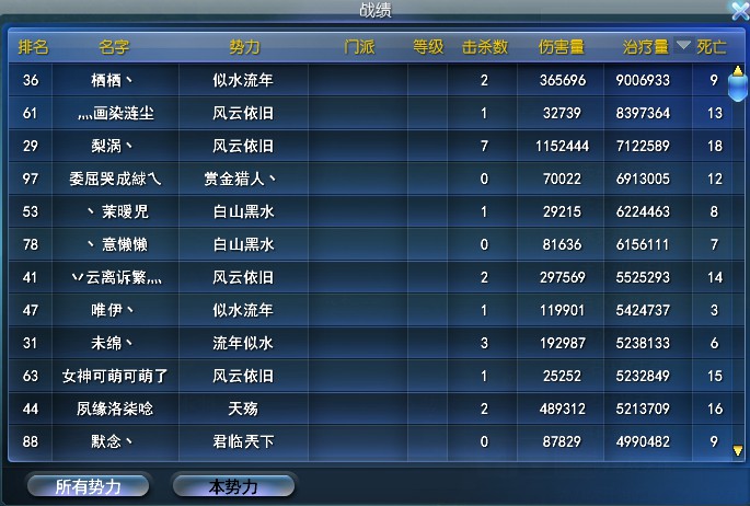 占据势力:白山黑水(氐巫寨、木克村) 风云依旧(石林) 赏金猎人丶(白水台)