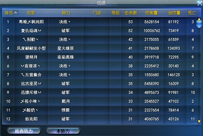 今日势力战落得祭天台最多的势力依旧是破军,三千次之,