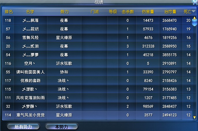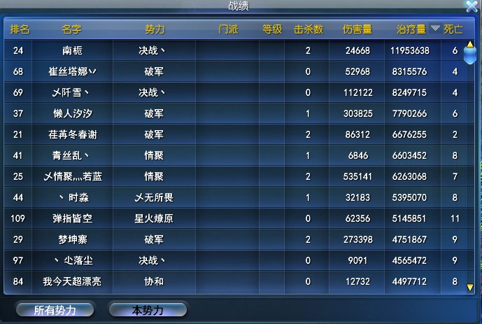 相对而言,破军方与三千方出勤较少,与岚光方人数相差较大;
