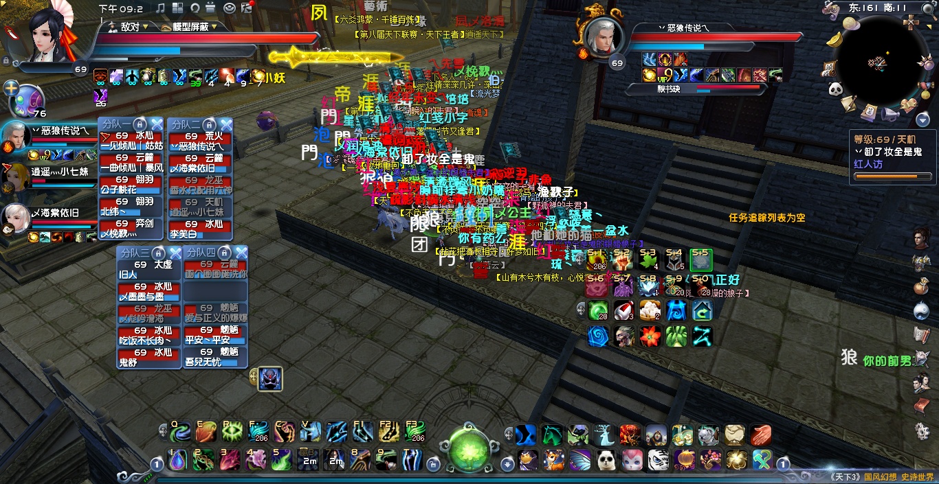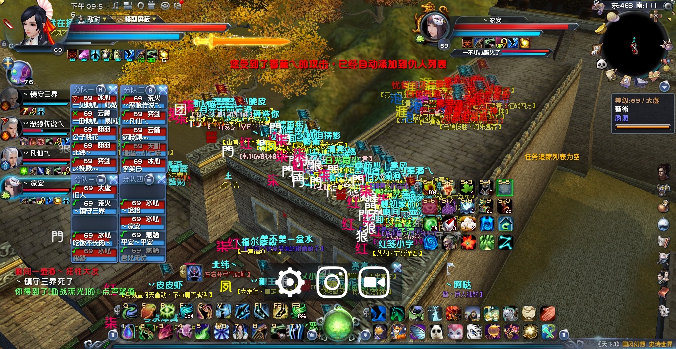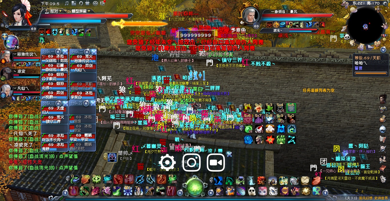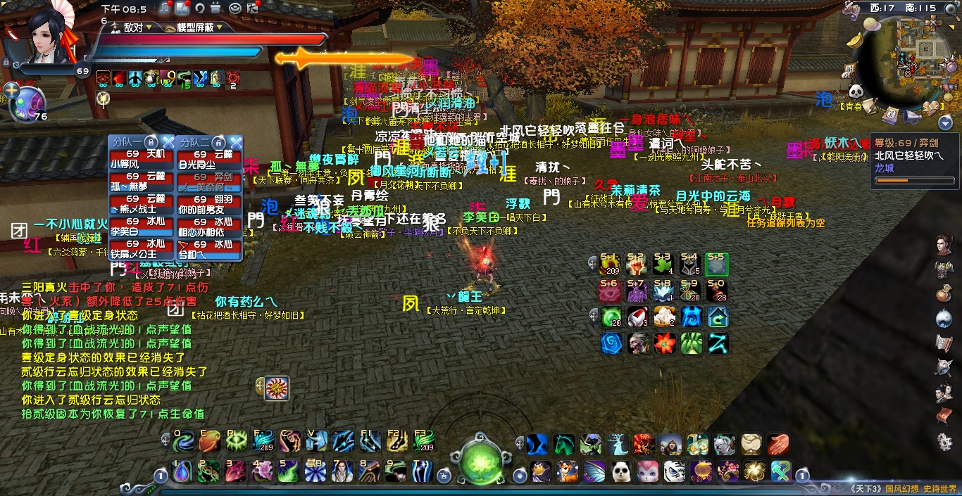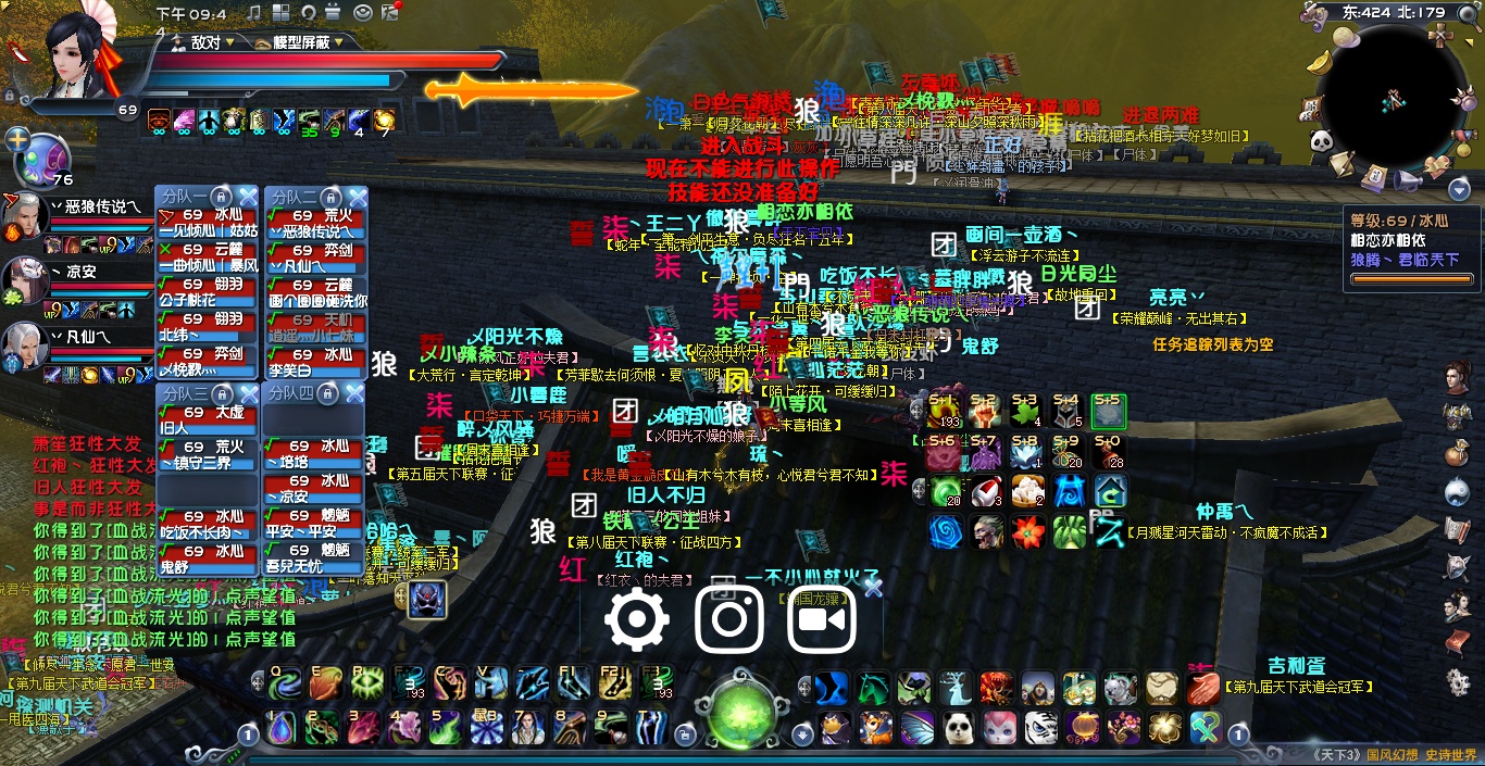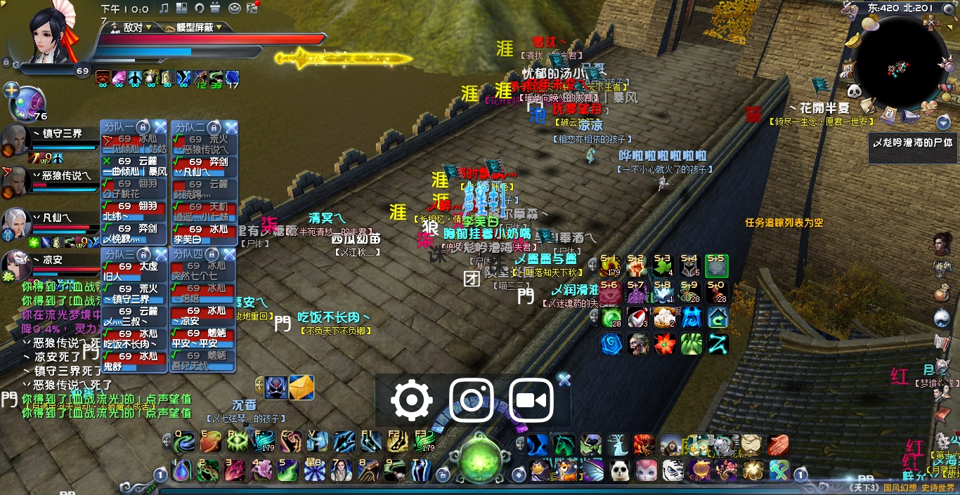 22:06左右 金戈方依旧在东北城墙 临兵方在下面房顶上一波消耗后 跳上城墙后,大团散乱 临兵伤亡较大,双方皆有伤亡不停复活补位,僵持了几分钟后,金戈方集合副本出梦境。