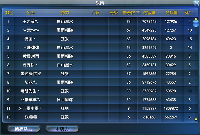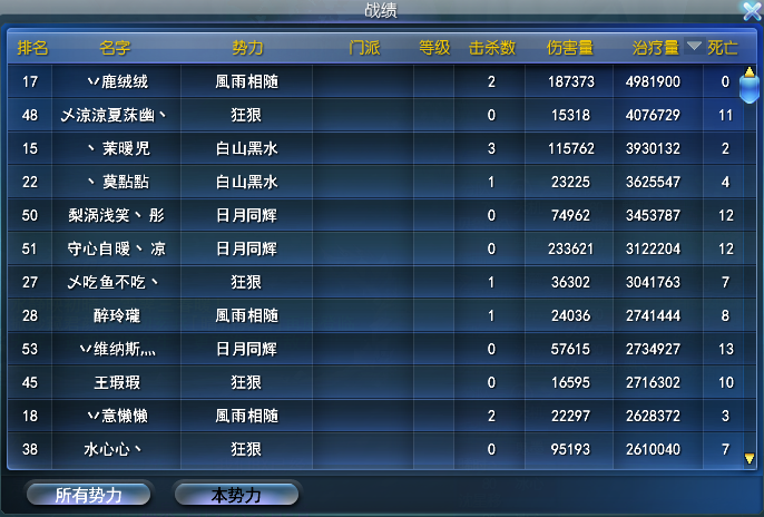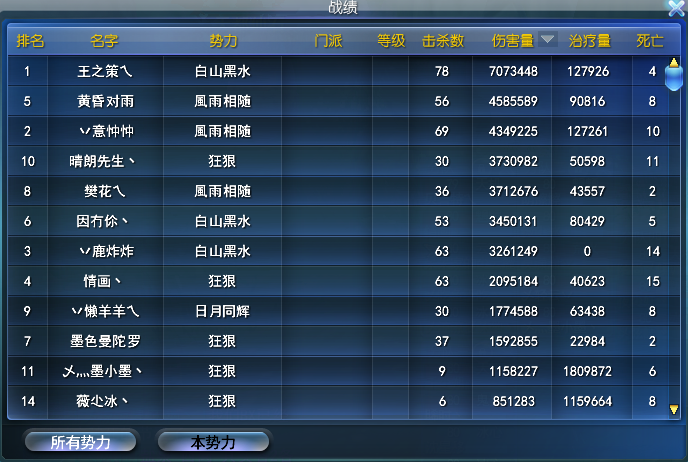第一:梵音战阁好像没人,第二:战无止境是联盟不要把联盟算作势力,总体比较中肯;另:5197风雨相随招收战 ...