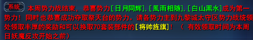 势力战开始,狂狠宣战战无悔与柒彩阁,并成功洗下西岗、盐泉村台子,