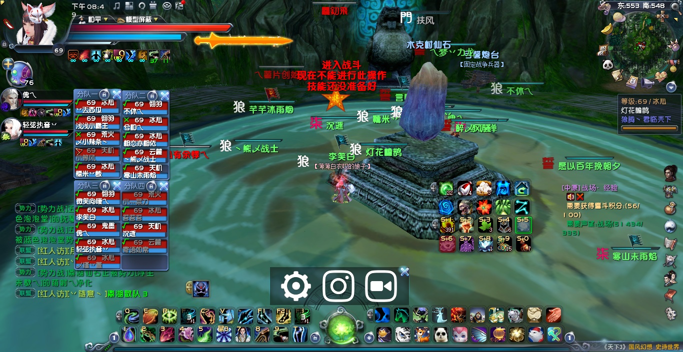 19:55—20:43左右 九黎南门九幽洞里 双方进行一波幻化对推 临兵方伤亡较大。