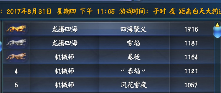【翰书天下·战报】【紫禁之巅】2017年8月31日流光战报(四海聚义视角)