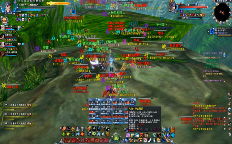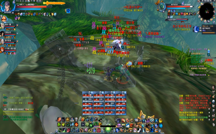 19:35乱码方进白水台祭天台净化仙石,19:40分左右岚光方从仙石12点方向进入白水台与乱码方交火,乱码方被灭,净化被打断;