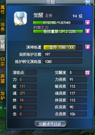 游戏内属性。关于孩子元魂珠就不贴图了,英雄榜能看。