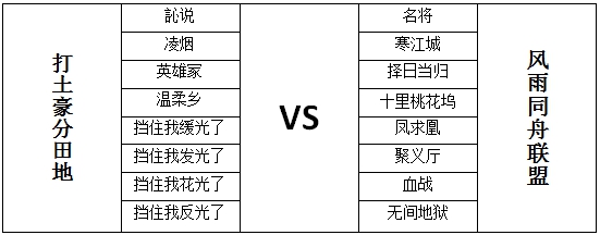 风雨同舟联盟集合于梦方醒位置,打土豪联盟顺势压上军粮位置双方开始输出交战,最终风雨同舟联盟不敌被清。