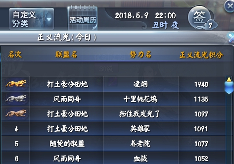 注释:流光积分为22点00分截图,明日流光城占据以明日8点积分为准。