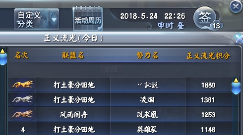 注释:流光积分为22点26分截图,明日流光城占据以明日8点积分为准。