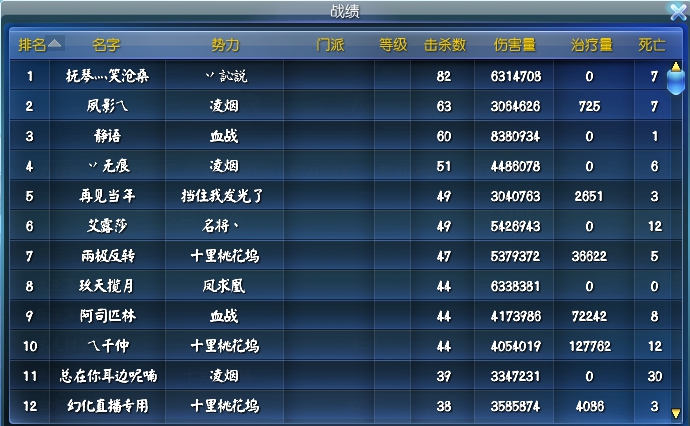 势力战开局凌烟线与白怼线与血战+十里桃花线在白水台交战输出,最终凌烟线被清。
