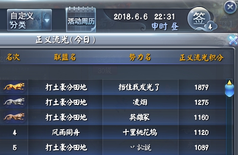 注释:流光积分为22点30分截图,明日流光城占据以明日8点积分为准。