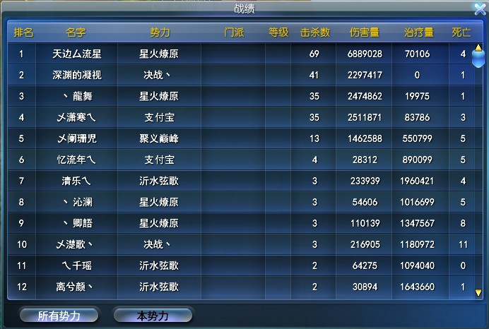 (星火燎原,沂水弦歌,夜染离殇,支付宝,一群水货,聚义巅峰)