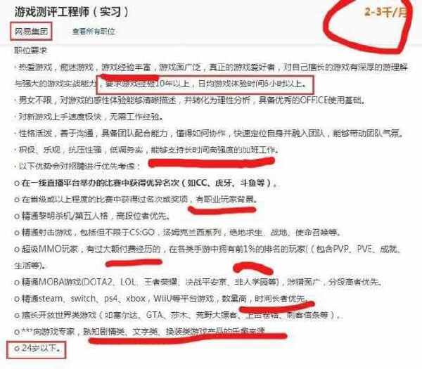 24岁以下10年游戏经验……月薪3000不到房租都不够