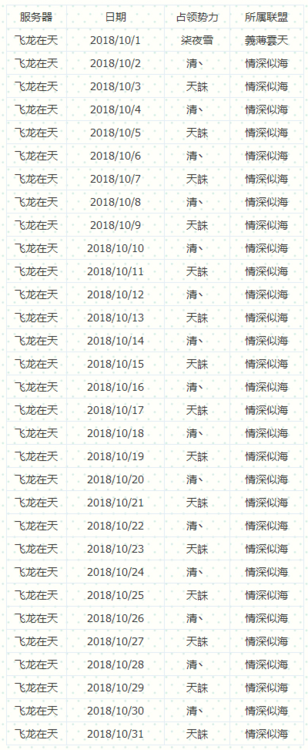 表格中占领势力为当天流光城占领势力,即为前一天分数最高的势力