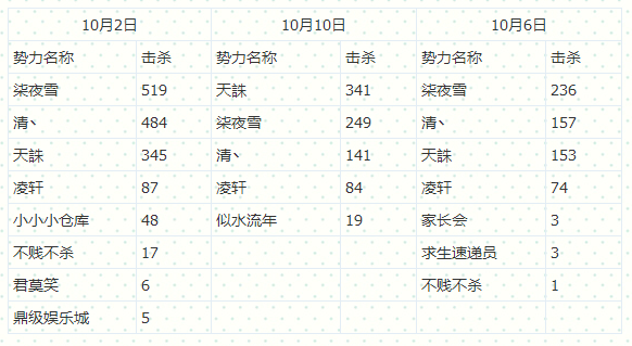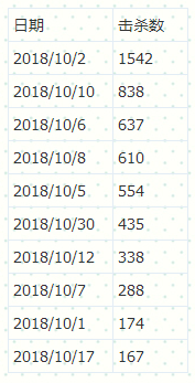 选取日期为10月份单日产生击杀最高的三天,2日、6日以及10日