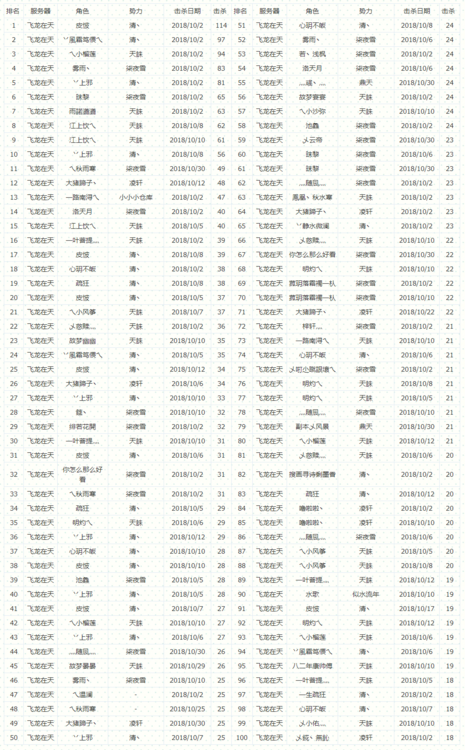 单势力总击杀排行榜