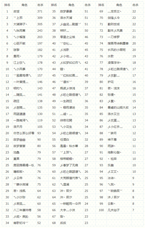 流光梦境产生击杀数前十的天数