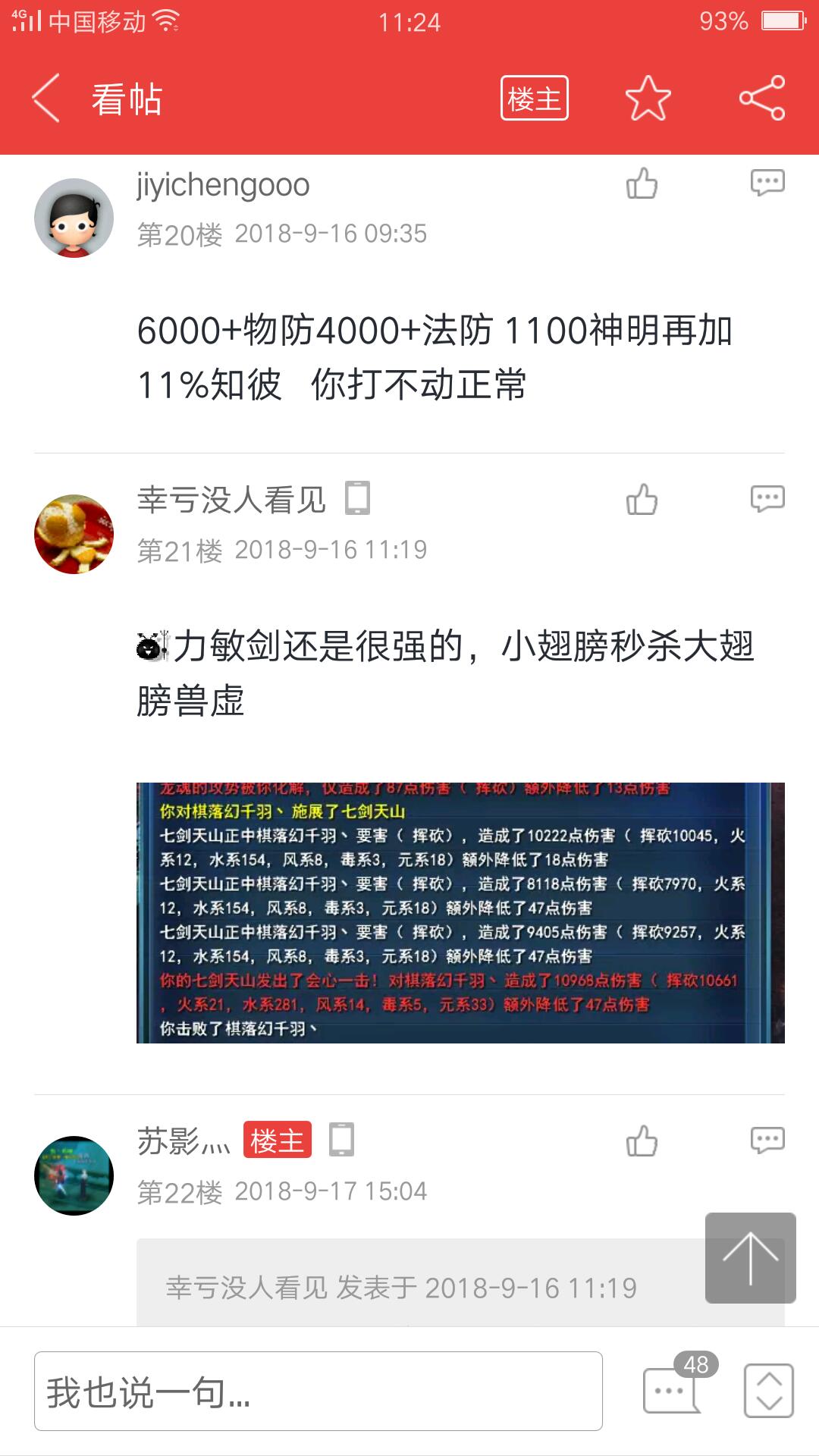 你可以试一下别的门派这点攻击能打出什么伤害,我玩TJ的时候21知彼6100物防一刀归元砍我两万