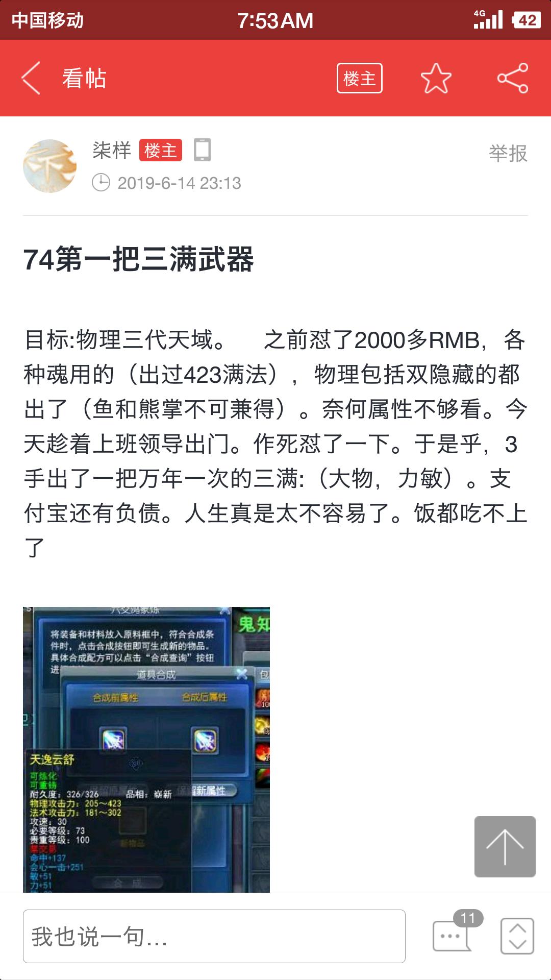 楼主是骗子?真的假的?小扬快澄清啊,你的清白被玷污了!虽然前段时间,你为了煅造一把绝世好剑,负了点债 ...