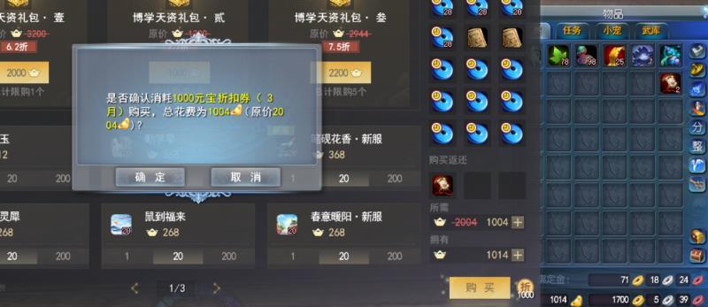 买了两个军姿三组新箱子,获得将近800多金以及900元灵!目前小钱包!算了下不亏不赚!