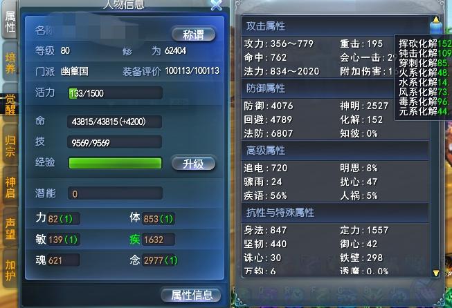 图一是之前存的图,洗点念是3045,回避4800+,法防6889