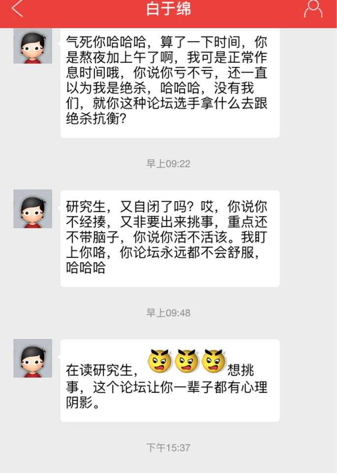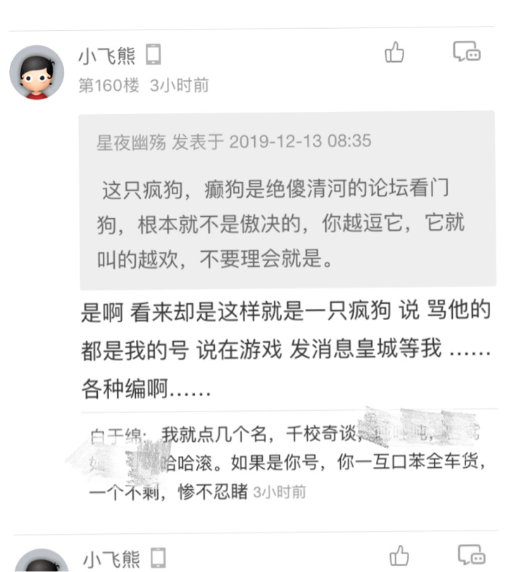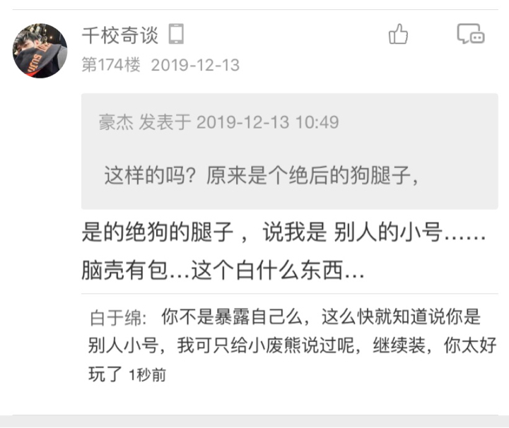 白于绵 发表于 2019-12-13 19:04 嗯,你还有三个号可以继续发帖。看你演,看你什么时候把我关进去,不是还私信威胁我,好吓人哦