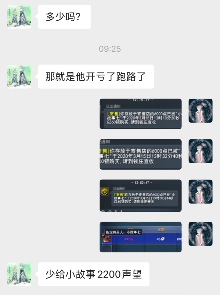 一大早,朋友找我,说我被黑了,我去看了下,简单来说,事情是这样的,小故事老板找骗子代开天域声望,我卖了骗子点卡,然后骗子开亏了,跑路,现在曝光骗子,不是随便什么人都是商人,如果实在要找,也麻烦老板看清楚