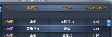 注:流光积分为22:30分截图,永恒联盟解散,明日流光城不出意外为(永恒联盟)占据。