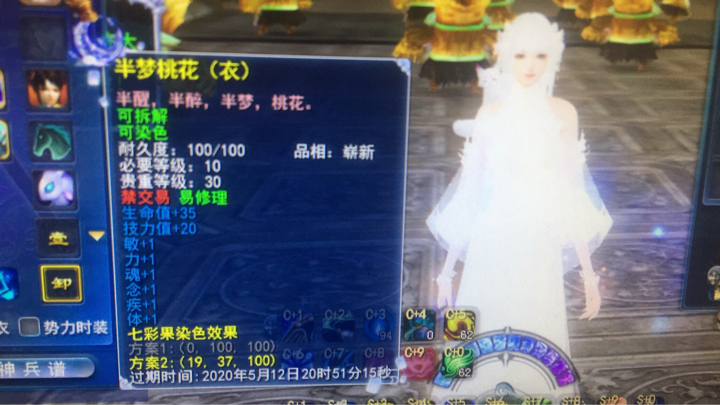 我发现好看的染色时装都不能永久。。凤舞,鸾凤,风露,天雨一帘,曦龙,锦鲤啥的。。。。。。又懒得回衣橱去拿、又没那么多珠子可冻
