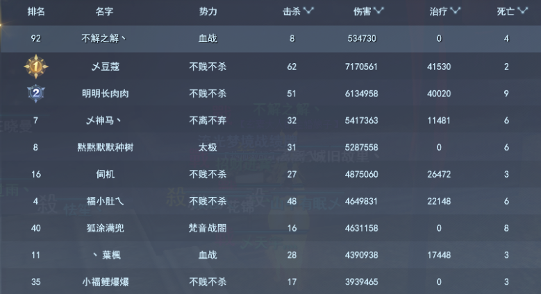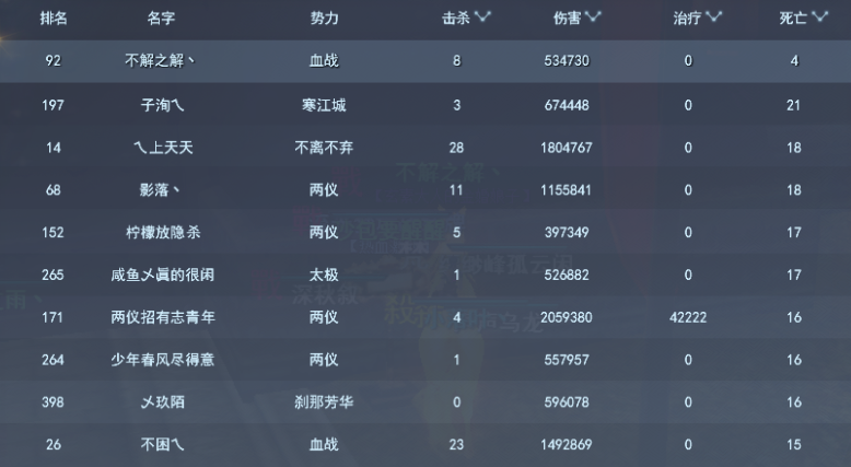 个人榜——死亡